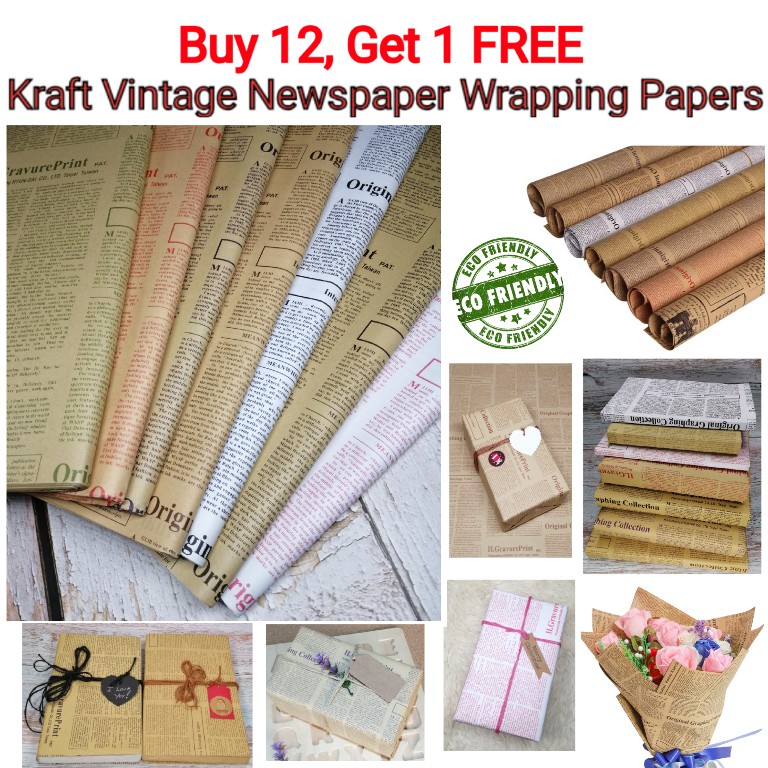 Buy 12 Free 1 Kraft Vintage Newspaper Wrapping Papers | Shopee Philippines