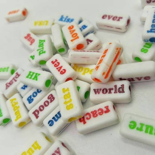 Jual Aksesoris Mote Akrilik Motif Kata-Kata Dasar Putih Tulisan Warna