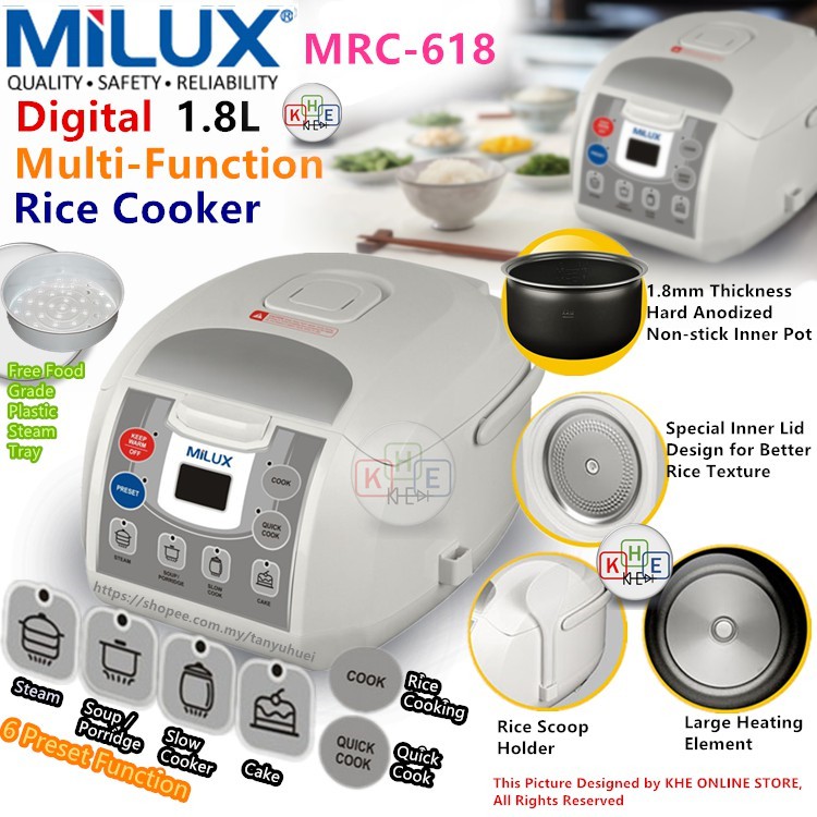 Milux Digital Multi Function Rice Cooker 1.8L MRC-618 | Shopee Malaysia
